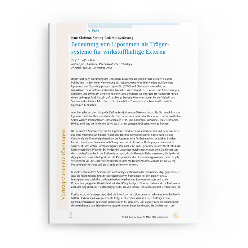 Bedeutung von Liposomen als Trägersysteme für wirkstoffhaltige Externa